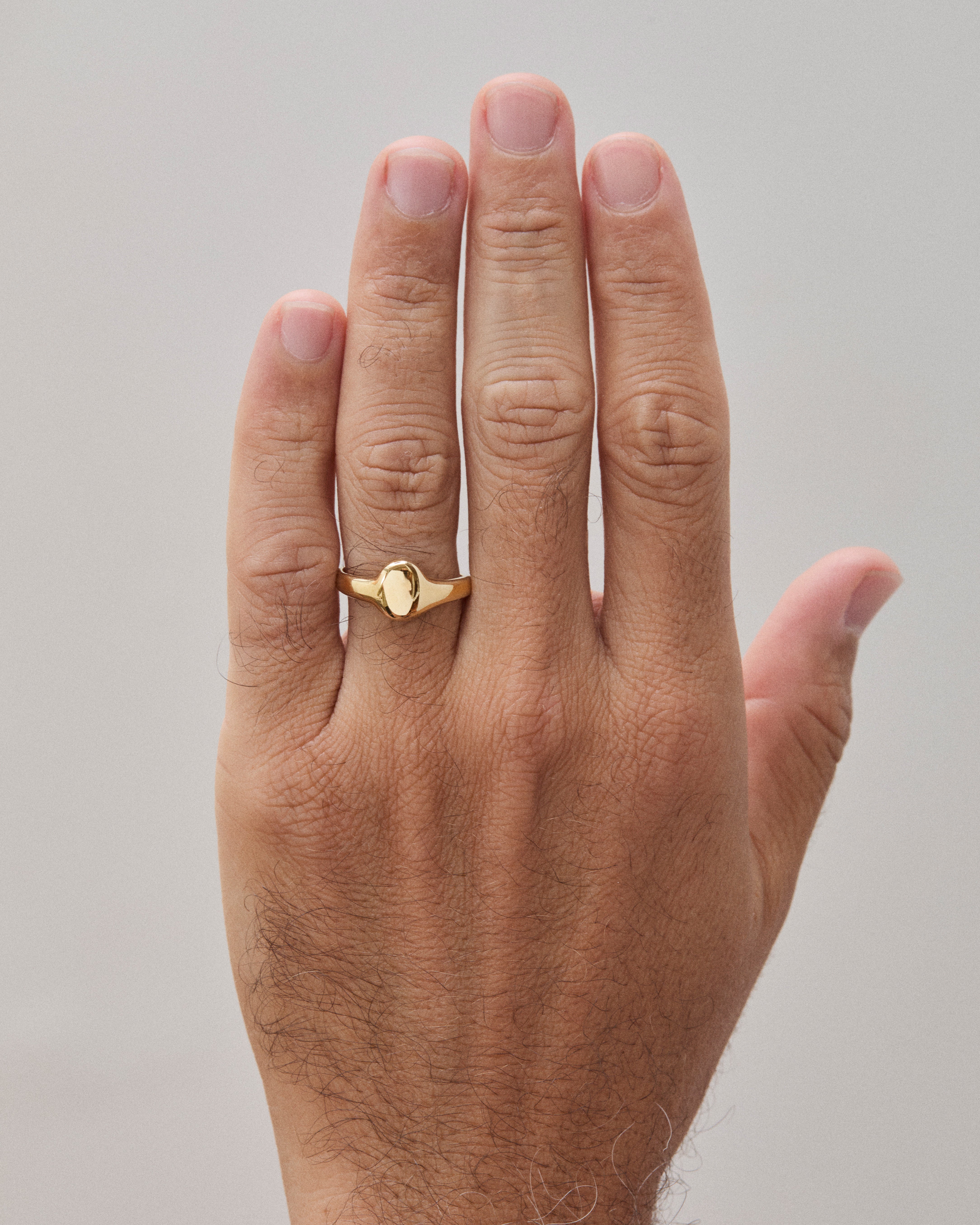 An 18k gold signet with a subtle irregular form. A contemporary take on tradition for the modern hand. Clean, sculpted lines convey lasting sophistication.