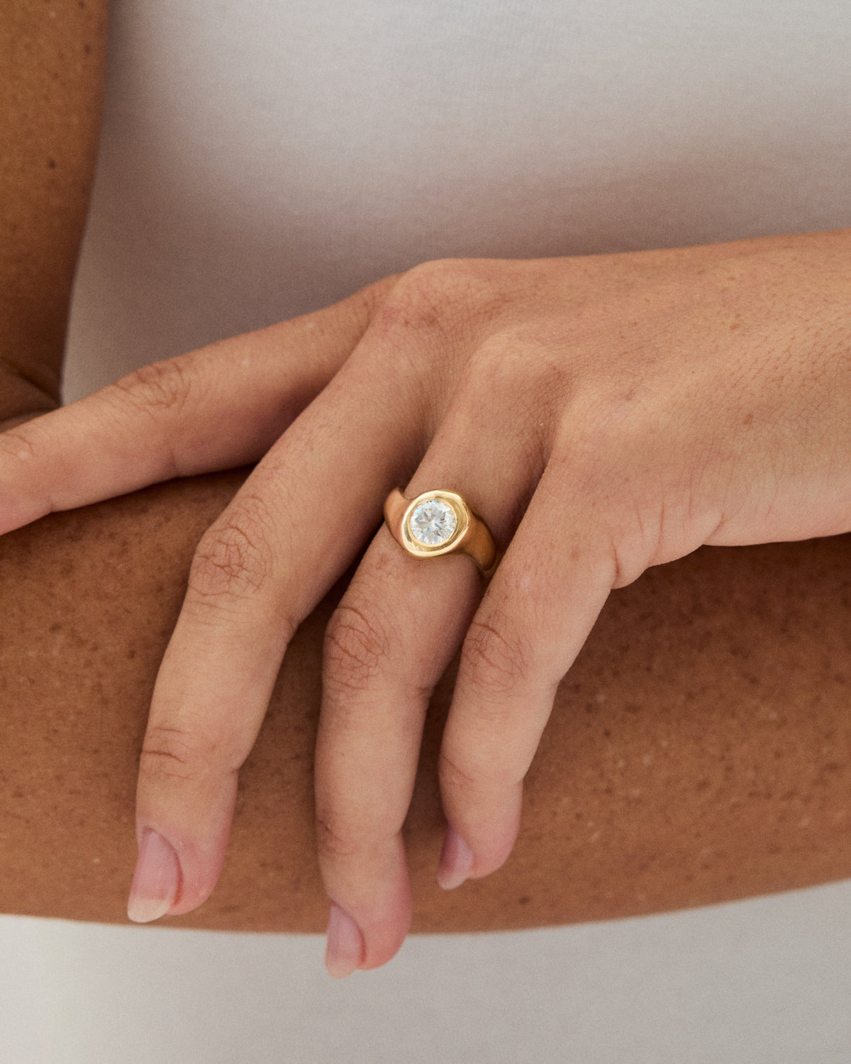 A ring to celebrate love. A 0.90ct diamond, set on an irregular, solid 18k band. Clean and smooth finish, perfect for everyday use. A classic, timeless design that will accompany you through many stages in life.