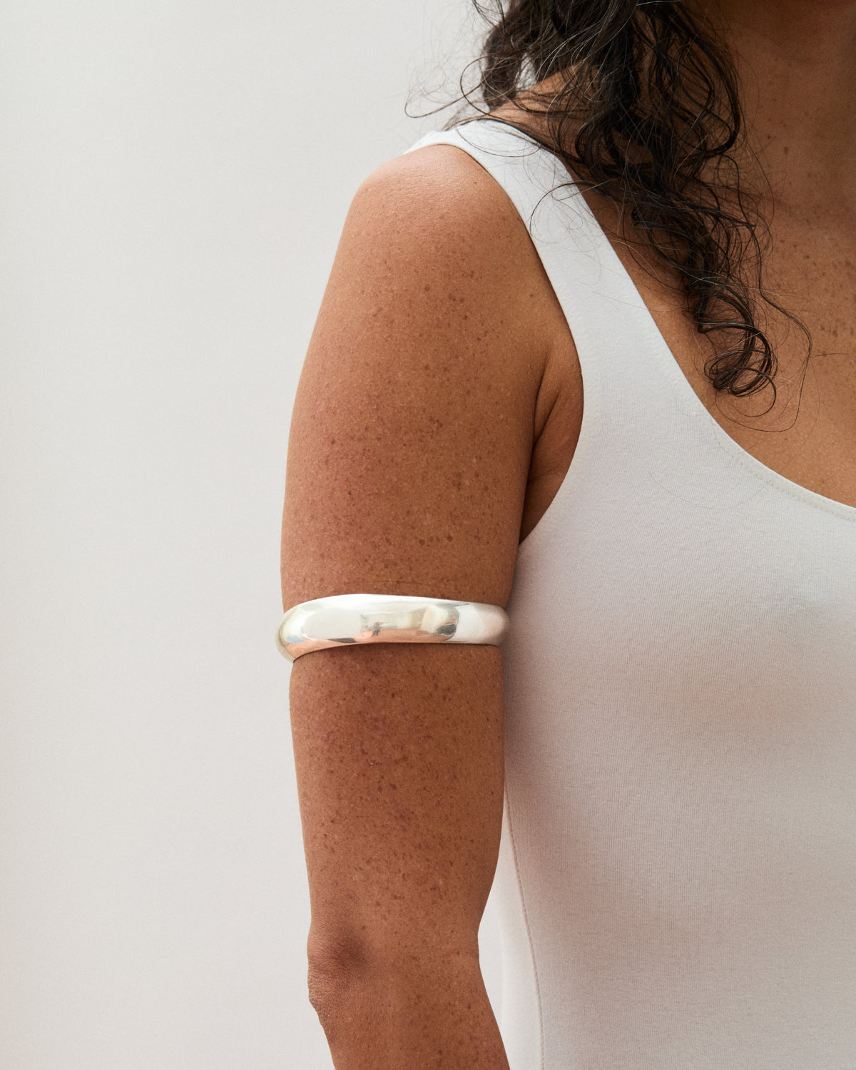 Solid sterling silver irregular arm cuff. Makes a bold statement and elevates any simple attire.