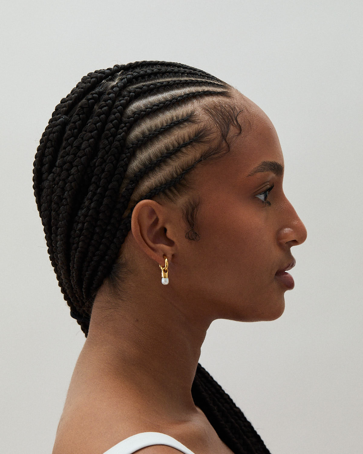 Small everyday hoop with baby freshwater pearl pendant. Wear it by itself or match it with the Pearl Hoop.