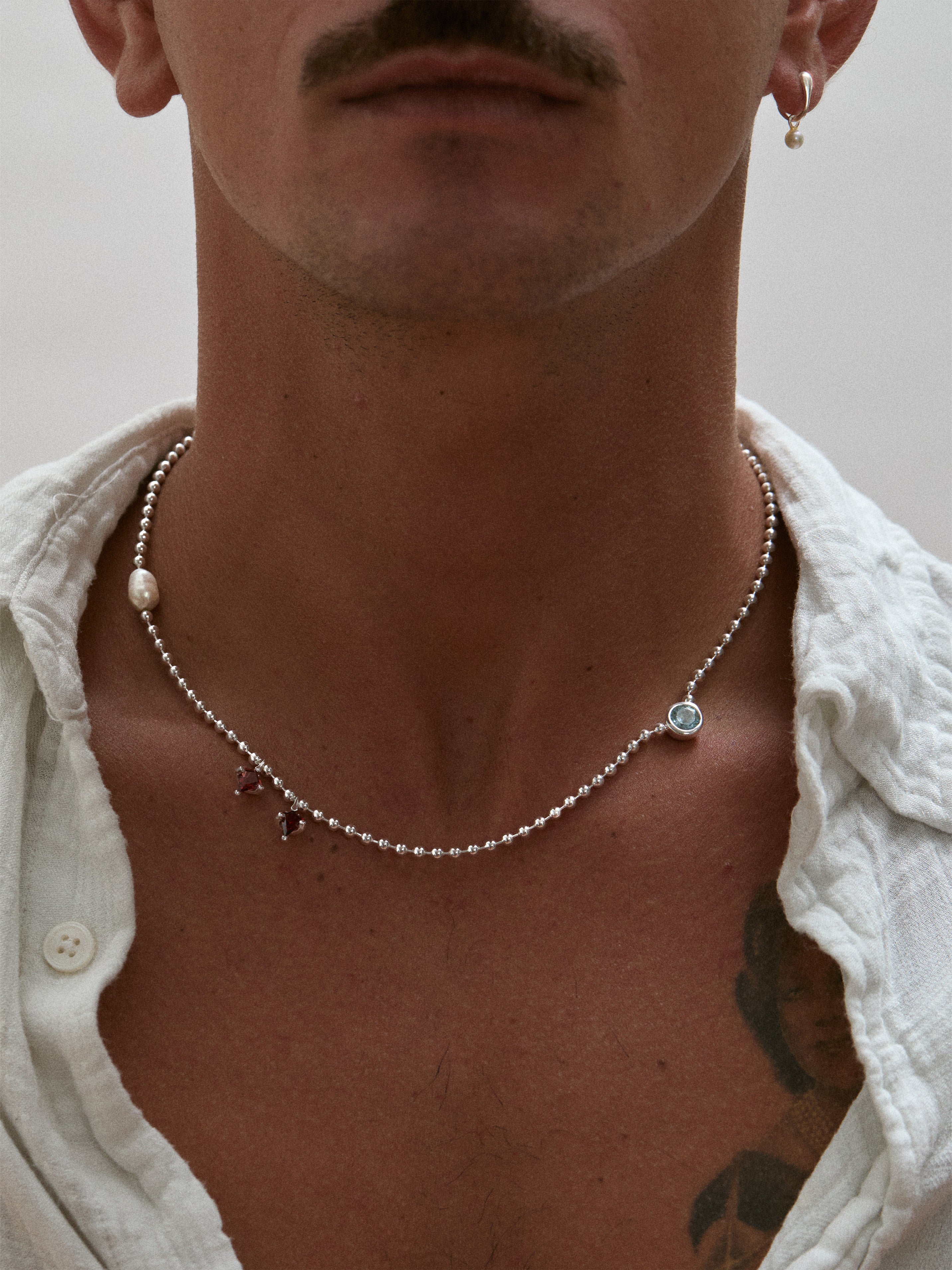 Sterling silver / garnet / aquamarine / freshwater pearl
