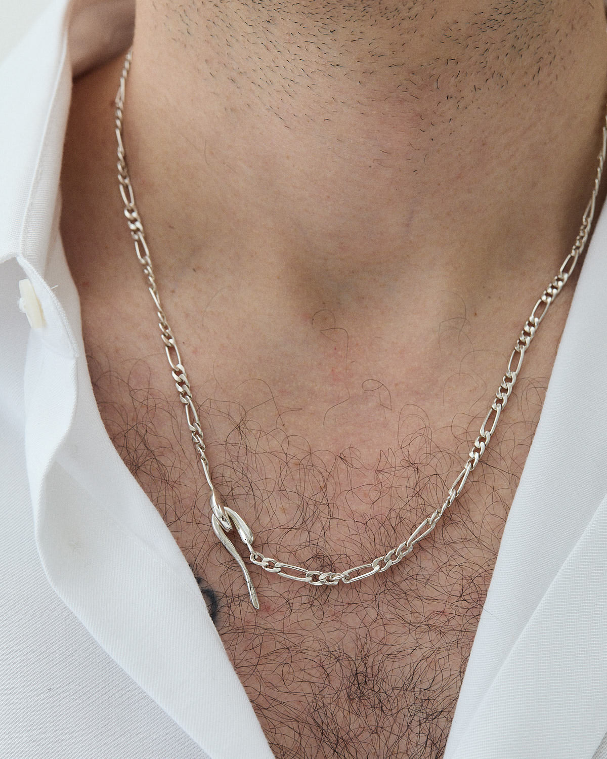 A smaller version of the Figarito, this necklace was made for everyday wear. The Figarito no.2 is a classic solid sterling silver small fígaro style chain with a unique hook closure.
