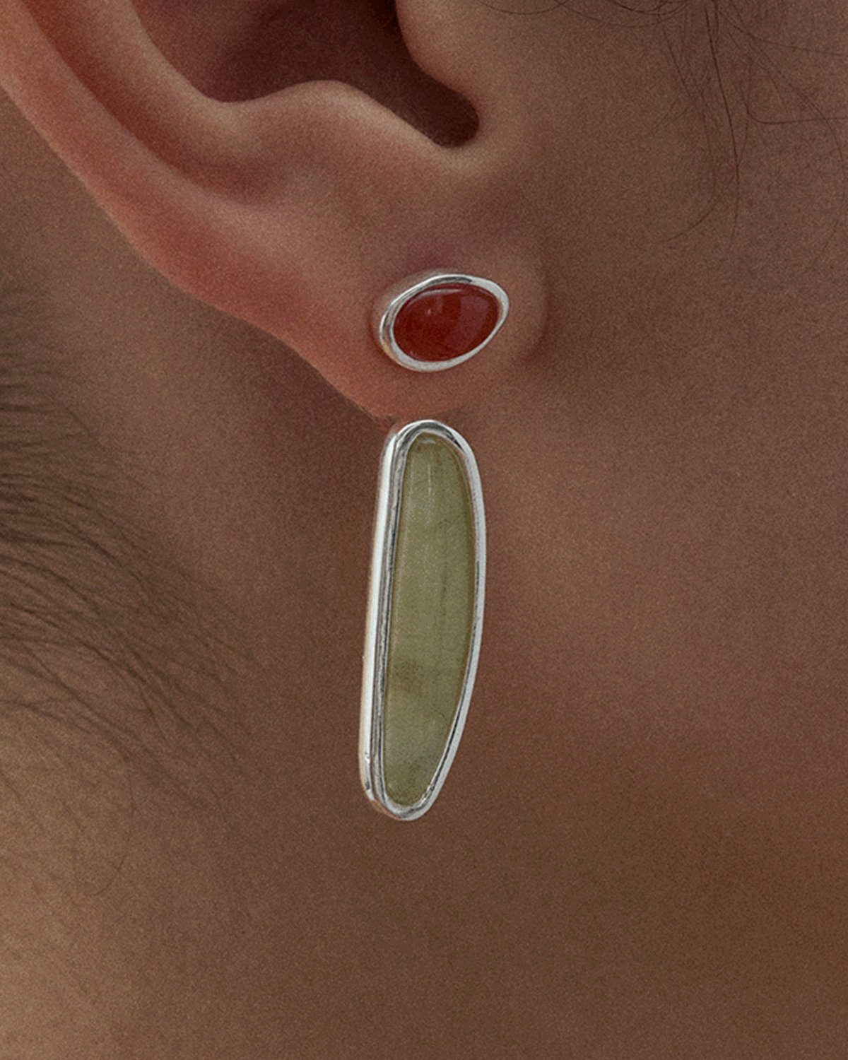 A combination of shapes and stones designed with contrasting elements to create a unique yet balanced mismatched pair. They can be worn as studs or interchanged to create different color combinations.