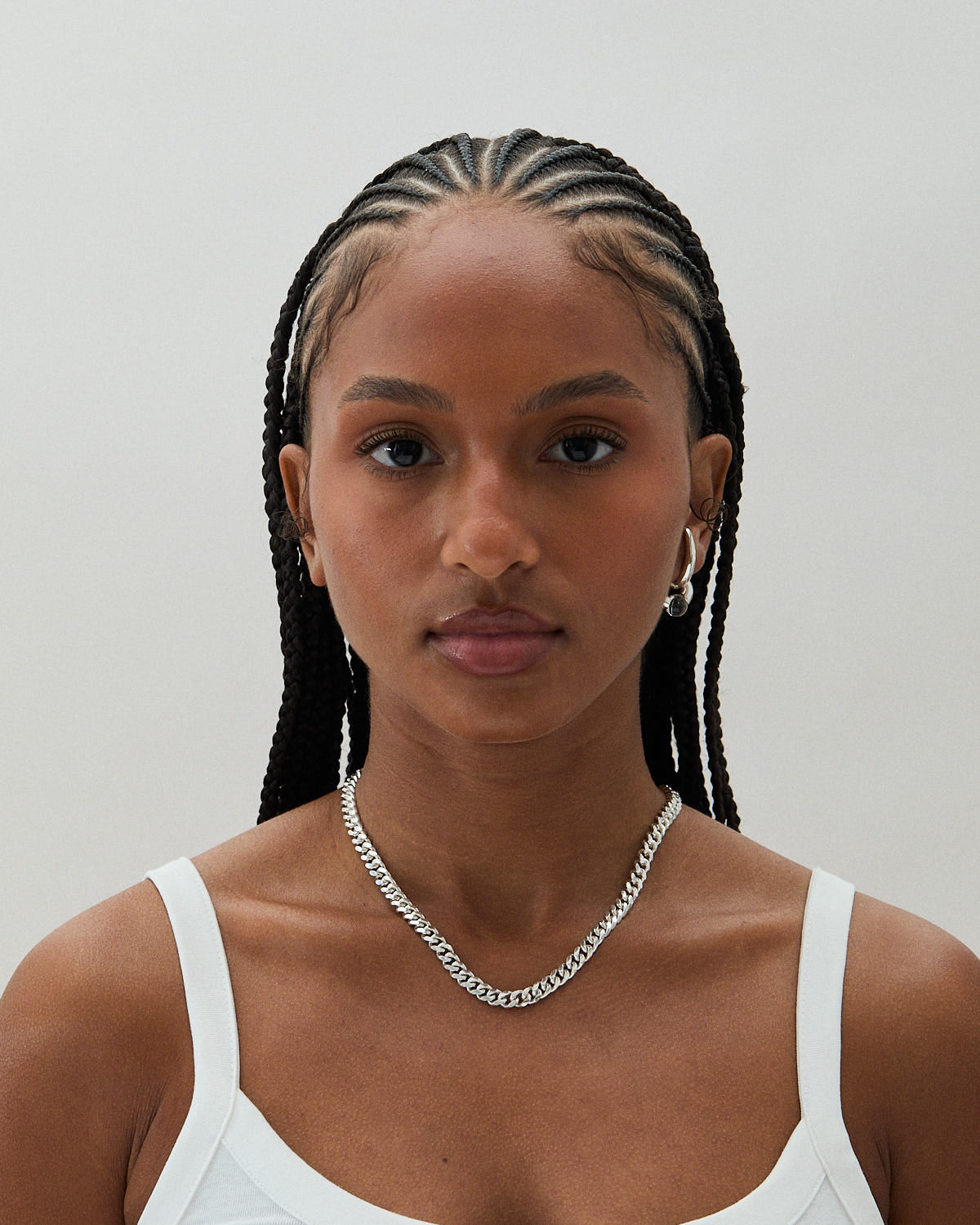 Classic cuban style chain in sterling silver with unique irregular disc toggle closure.