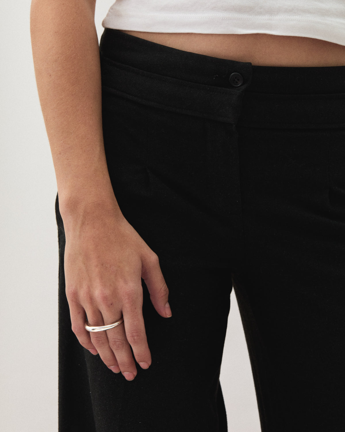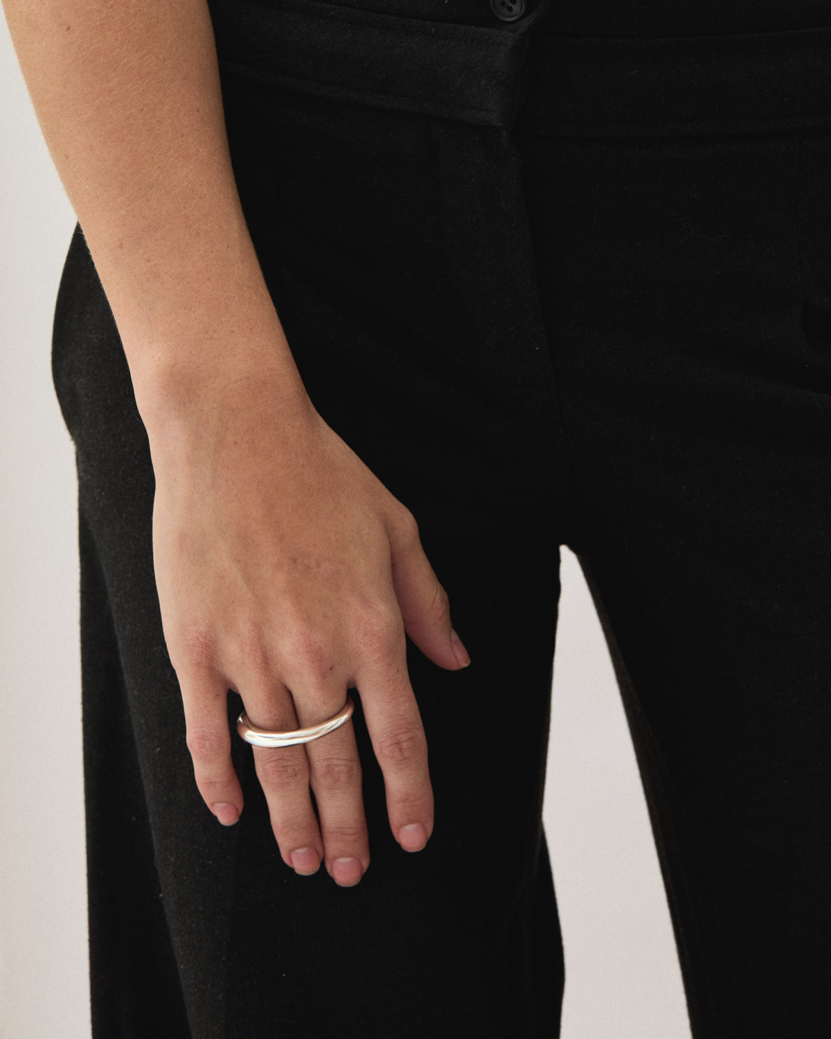 A simple open double ring with irregular width. A wearable miniature sculpture.